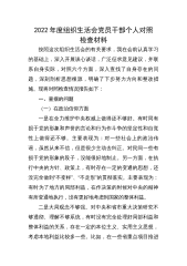 【组织生活会】普通党员干部2022年度专题组织生活会对照检查材料