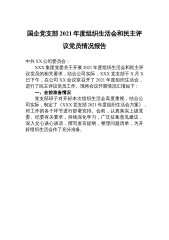 国企党支部2021年度组织生活会和民主评议党员情况报告
