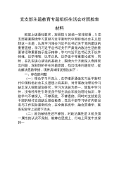 “学党史、悟思想、办实事、开新局”专题组织生活会支委会班子对照检查材料党史学习教育开展以来,xxx机关党支部紧紧围绕“学党史、悟思想、办实事、开新局”的总体要求,严格落实周一例会制度,突出党史学习教育“七项学习重点”、用好“七种学习方式”、把握“六个紧密结合”,有序推进党史学习教育,取得了良好成效。根据《关于召开党史学习教育专题组织生活会有关问题的答复》的通知要求,支委会班子认真学习了习近平总书记在党史学习教育动员大会上的重要讲话和党中央指定的4本学习材料,会前重点学习了习近平总书记在庆祝中国共产党成立100周年大会上的重要讲话,支委委员之间、支委委员与党员之间深入开展谈心谈话,广泛征求意见建...