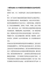 X领导在参加2022年基层党支部专题组织生活会时的讲话