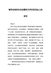 领导干部在支部2022年度组织生活会和组织评议党员大会上的点评讲话同志们:按照市委统一安排,今天,专程来到这里,参加XX支部的专题组织生活会。刚才,支部书记XX同志带头剖析根源认真到位,各党员同志批评和相互批评,大家敞开思想、坦诚相见,自我批评不掩饰、不遮丑,相互批评不绕弯、不回避,体现了刀刃向内的自我革命精神,达到了批评、交流、警示和统一思想、深化认识、增进团结、促进工作的目的。此次组织生活会前组织准备充分、会中氛围严肃认真、会议取得预期成效,是一次严肃认真、组织团结、求真务实的组织生活会。当然,从更高标准、更严要求来说,也还存在一些不足,比如:有的同志指出的批评意见以工作建议代替批评;有的...