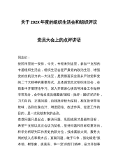 关于202X年度党支部组织生活会和组织评议党员大会上的点评讲话