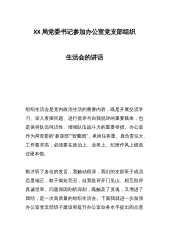 关于202X年度党支部组织生活会和组织评议党员大会上的点评讲话同志们:刚才,**同志代表局党支部委员会向党员报告了2022年党支部工作情况,通报了本次组织生活会准备情况,并代表党支部委员会及个人进行对照检查。每位党员从思想、工作、能力、作风等方面联系实际进行自我剖析,开展批评与自我批评,达到了深化认知、强化担当、共同提高的目的。应该说,本次组织生活会前准备充分,程序规范,各位党员的批评和自我批评开诚布公,会议成效明显,取得了预期成效。达到了“红脸出汗”的作用,达到了推进工作、增进团结的目的。希望党支部以这次组织民主生活会为契机,认真总结,积极整改落实,建章立制,不断改革创新切实转变作风,以党支...