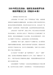 2025年民主生活会、组织生活会批评与自我批评意见汇总(四组共48条)